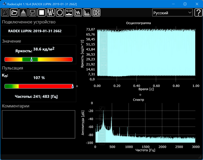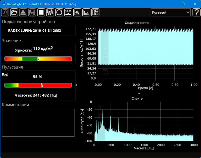 Яркость 75%. Уже заметное мерцание, превышение нормы в два раза.