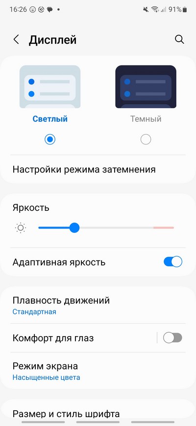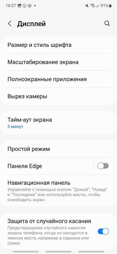 Традиционные для Samsung настройки дисплея: цветовые схемы, режим работы, настройка размера шрифта, масштаб, панели Edge.