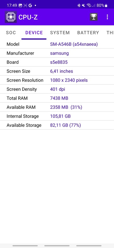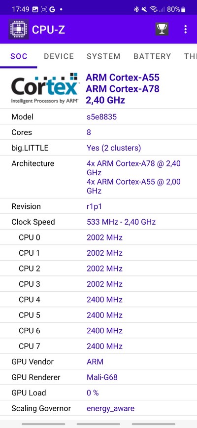 Платформа: Exynos 1380 (5 nm), Octa-core (4x2.4 GHz Cortex-A78 & 4x2.0 GHz Cortex-A55)