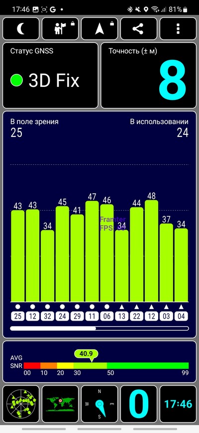 Холодный старт был очень быстрый: смартфон сразу увидел спутники и использовал их почти все. С навигацией никаких проблем не было.