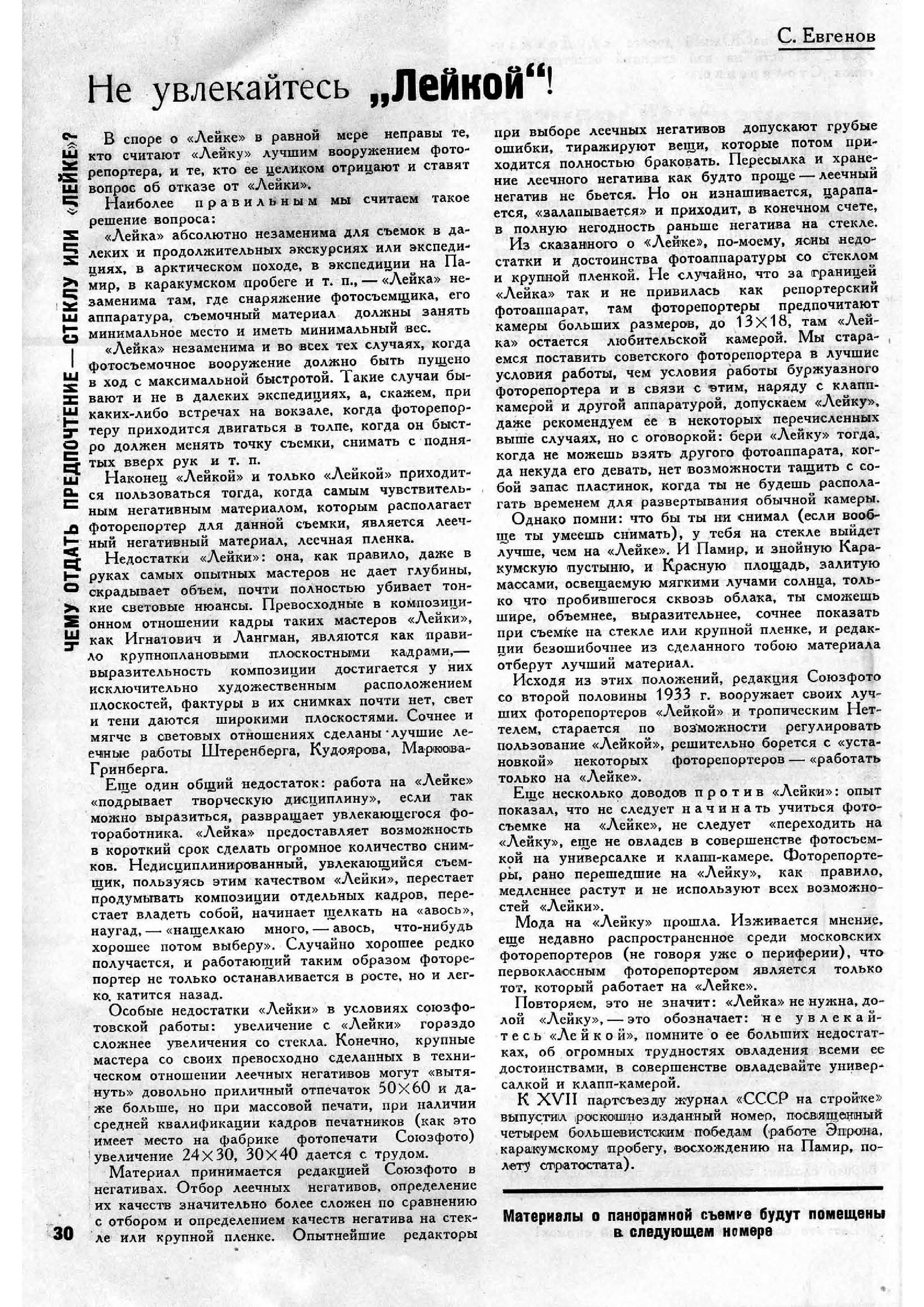 А вообще, ещё в 1934 году в журнале «Советское фото» предупреждали, что нормальная камера с фотопластинками снимает гораздо «объёмнее, выразительнее и сочнее», чем жалкая «Лейка» с киноплёнкой 24*36 мм.