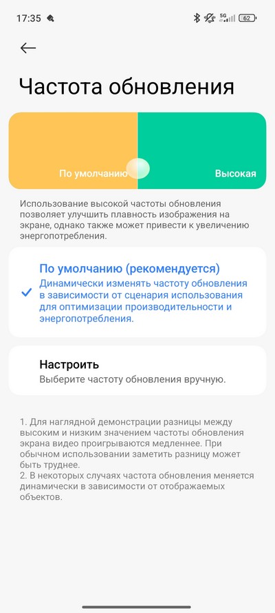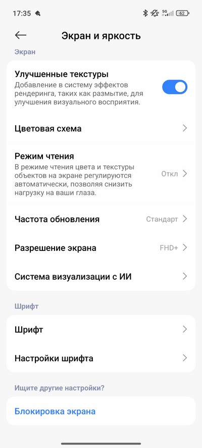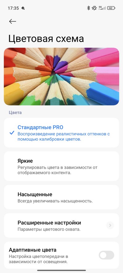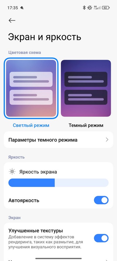 Цветовая схема и частота обновления. Также есть режим чтения, настраиваемый по расписанию.