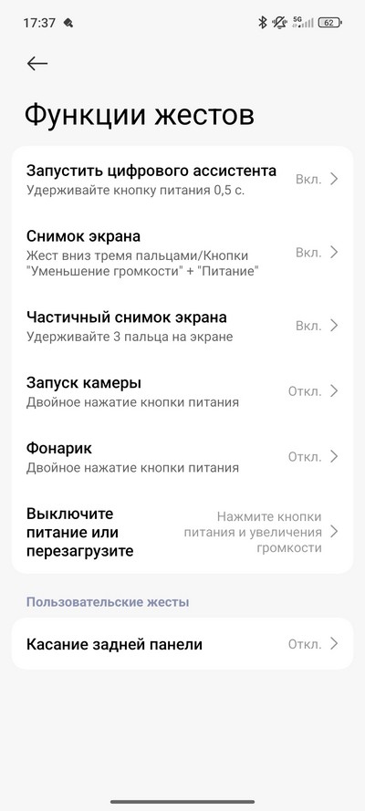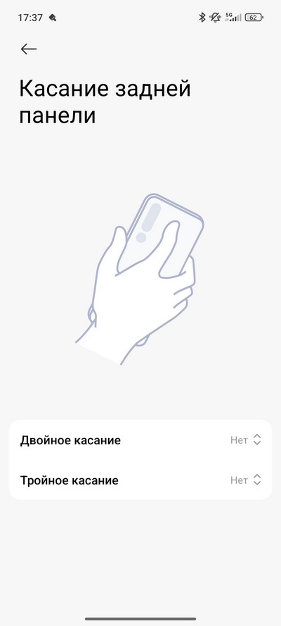 Можно выбрать действие по двойному и тройному касанию задней панели.