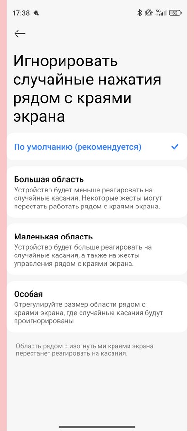 Можно задавать область игнорирования случайных нажатий рядом с краями экрана.