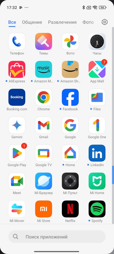Android 15, оболочка Xiaomi HyperOS 2. Главный десктоп и установленные в системе приложения.