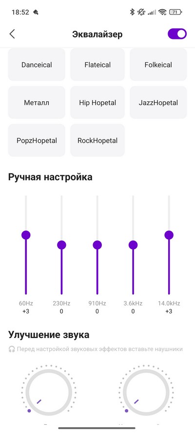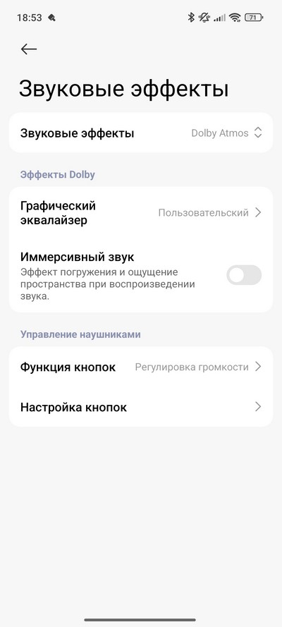 В настройках можно включать Dolby Atmos или Xiaomi Sound (это улучшает звук), использовать эквалайзер и иммерсивный звук.