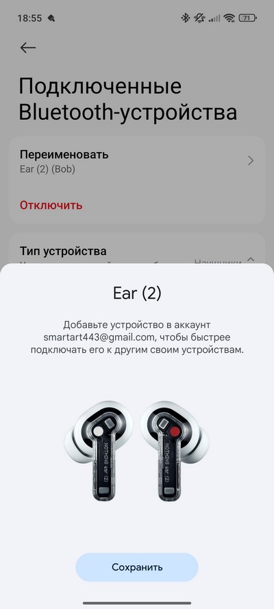 Для проверки беспроводного звучания подключил наушники Nothing Ear (2). По умолчанию они подключились по кодеку AAC, однако там в настройках подключенного устройства можно включить кодек LHDC.