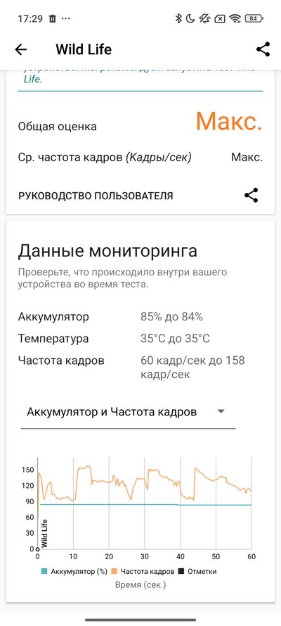 Asphalt Legends Unite на максимальных настройках работал очень плавно, играть на этом смартфоне - одно удовольствие. FPS все время держались на максимальном уровне - 60. (Я тут в записи ухитрился сшибить противника прямо в воздухе - первый раз у меня такое.)