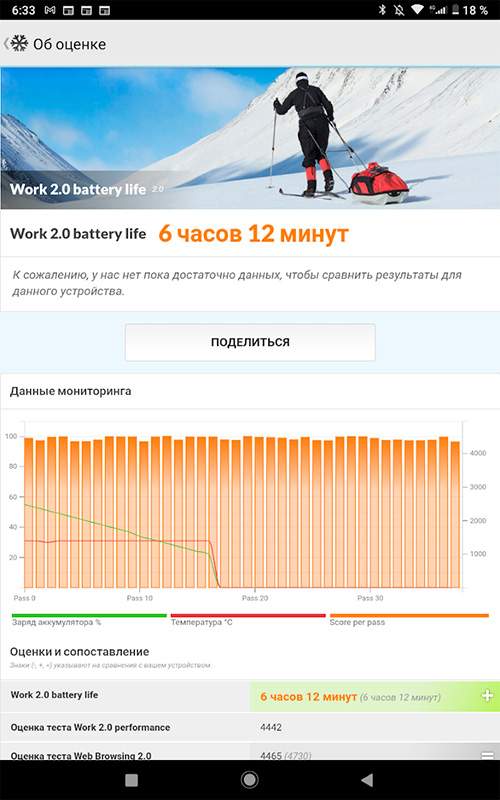 Терпимо. Это означает, что под смешанной нагрузкой планшет продержится где-то 8 часов.