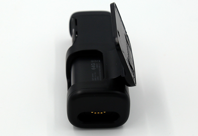 Держатель может откидываться на угол до 70 градусов, ну и по этому фото видно, как подключается питание - просто через этот слот. Обычно если у видеорегистратора есть контактная группа, то аналогичную группу делают в держателе и провод подключается к нему. Здесь контактную группу на корпусе сделали, а с держателем морочиться не стали. Странноватое решение.