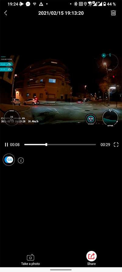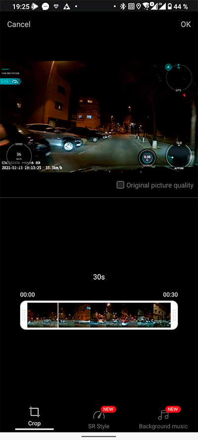 Так что с этим, можно сказать, разобрались. И какая-то логика в этом есть: если видеорегистратор установлен стационарно, а карты памяти у него нет, то, в общем, логично иметь эти ролики в смартфоне, и они там полноценные, максимального разрешения. (Кроме того, как я показал выше, их можно куда угодно экспортировать в оригинальном разрешении с наложением дополнительной информации.)