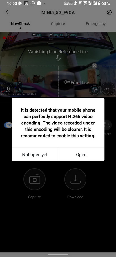 При первом запуске приложение предлагает переключить запись на использование кодека H.265, но лучше этого не делать - для совместимости: далеко не все плееры умеют нормально воспроизводить этот кодек, так что лучше использовать совместимый H.264. (Вид кодека можно переключить в настройках.)