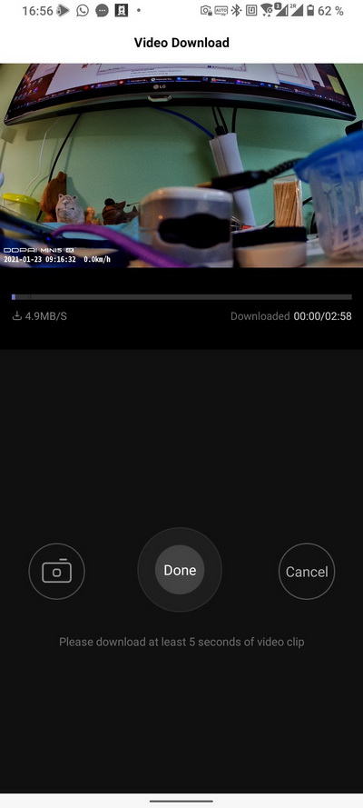 Вообще, тут рассчитано на то, что вы какие-то нужные вам ролики будете получать непосредственно из данного приложения (и из смартфона), поэтому в главном окне приложения вы видите всю линейку записей данного сеанса, по линейке можно передвигаться и с какого-то временного отрезка запускать сохранение видео в галерее смартфона. В правом скриншоте как раз и показан процесс загрузки такого ролика.