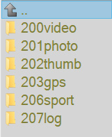 В чем тут проблема? Проблема в том, что если вы принесете видеорегистратор домой и подключите его к компьютеру, то увидите вот такую структуру папок. Никакой папки для защищенных роликов тут нет (ну, то есть она есть - 206sport, но она всегда пустая). И внутри папки 200video этих роликов нет.