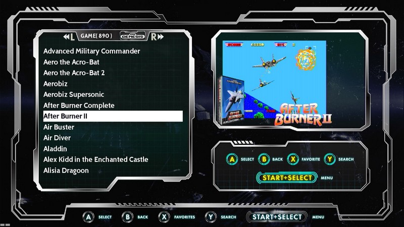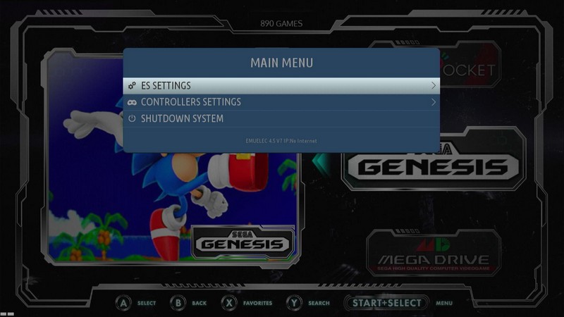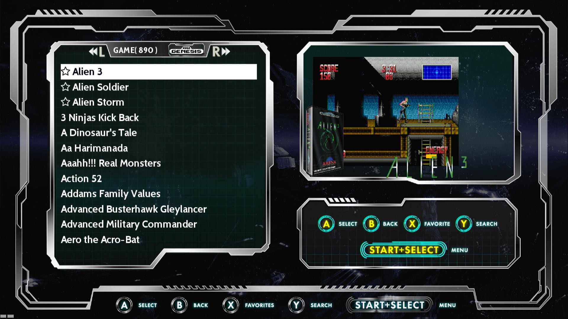 Меню, появляющееся на главной странице при нажатии Start-Select.