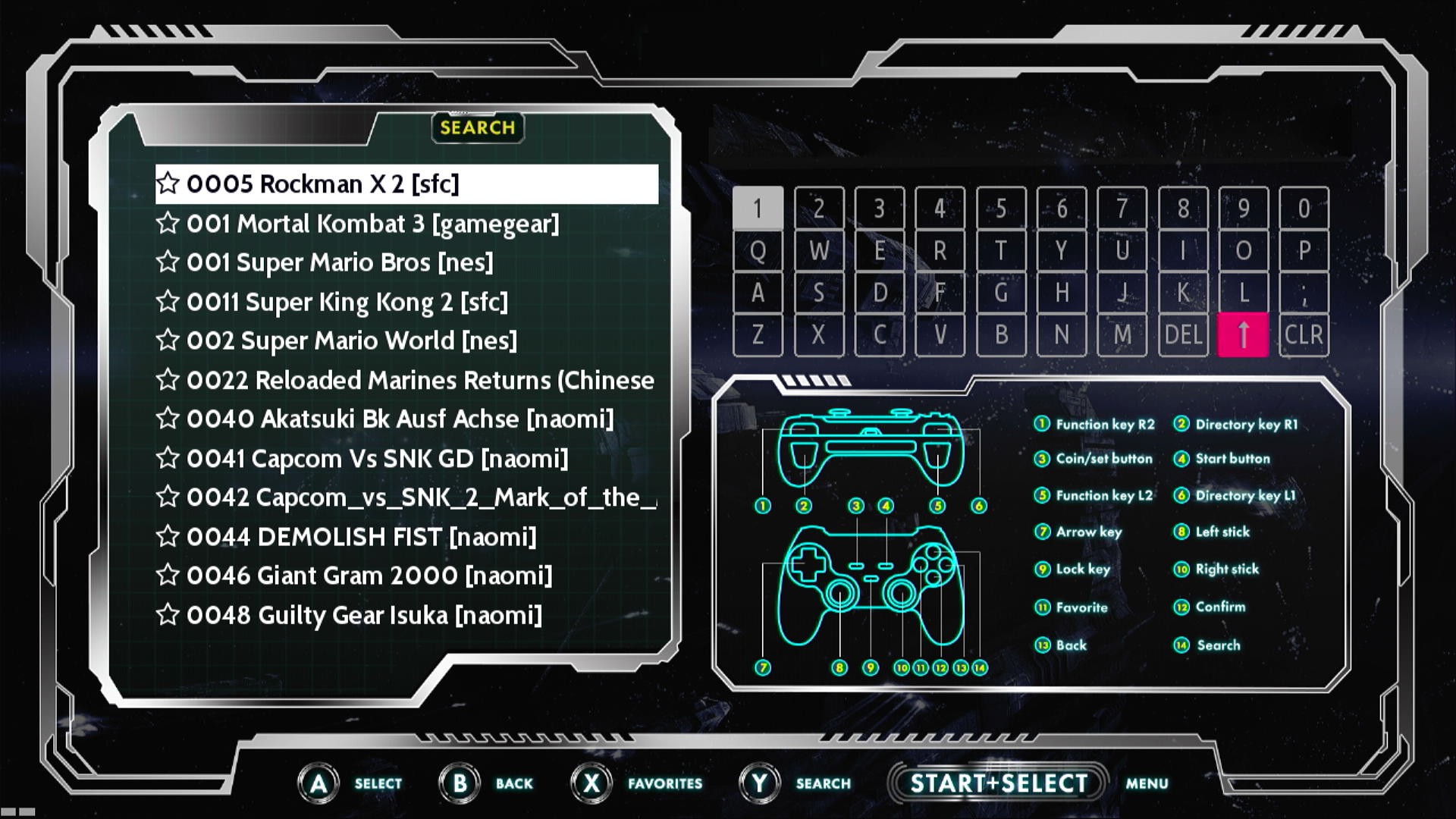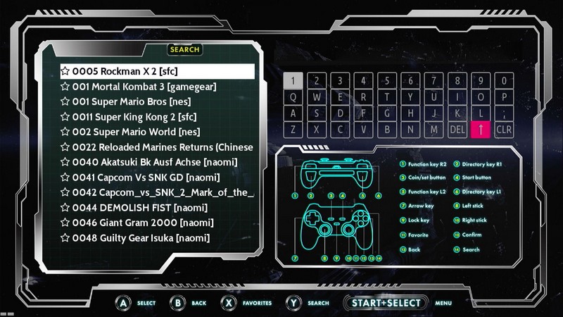 При выборе конкретного эмулятора, появляется список соответствующих игр. Также можно открыть список любимых игр и окно поиска игры.
