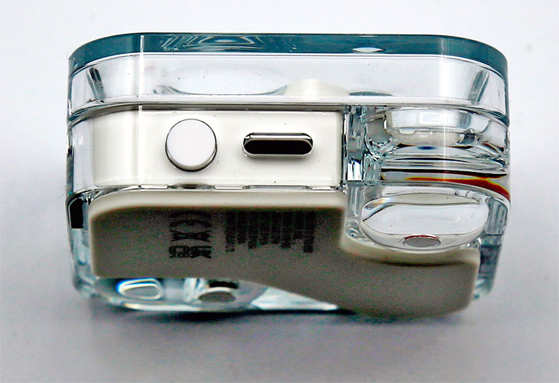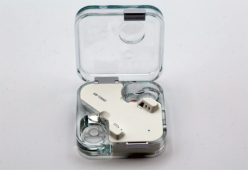 Надо сказать, что тут даже сам зарядный кейс уже привлекает к себе внимание своим необычным дизайном и прозрачностью верхней крышки. Я сначала даже подумал, что это просто упаковка такая эффектная - ан нет, это именно зарядный кейс. Его высота - всего 22 мм, так что кейс спокойно можно носить, например, в кармане джинсов.
