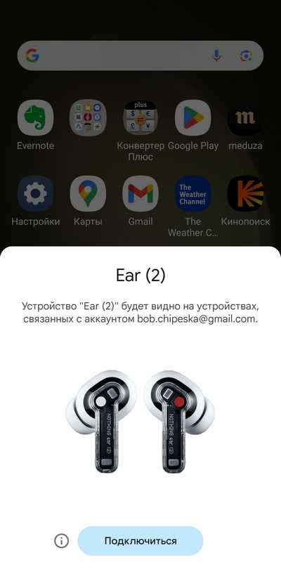 Здесь поддерживаются режимы быстрого подключения Google Fast Pair и Microsoft Swift Pair, так что когда смартфон на Android или компьютер видят эти наушники, находящиеся в режиме сопряжения, они выводят сообщение с предложением подключить наушники одной кнопкой. А при подключении предлагают скачать и установить соответствующее приложение для работы с этими наушниками (под Android приложение называется Nothing X).