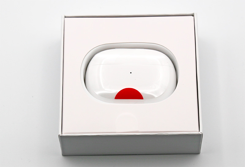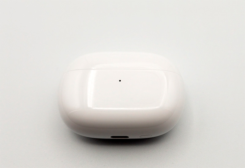Зарядный кейс, выполненный из пластика. Крышка магнитная, есть светодиод для индикации процесса зарядки, порт Type-C и кнопка для принудительного включения режима сопряжения.