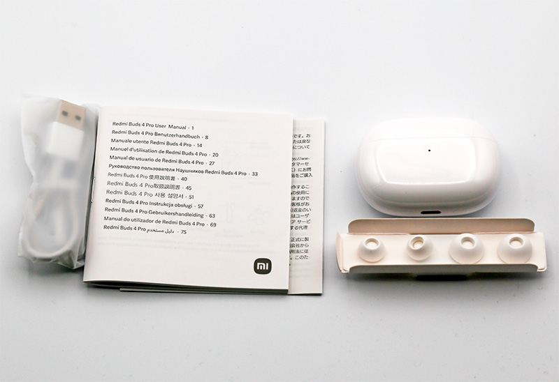 Комплект поставки: кейс с наушниками, руководство пользователя, кабель для зарядки и две дополнительные пары амбушюров - маленькие и большие (средние - на самих наушниках).