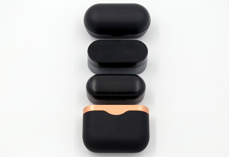 Зарядный кейс - довольно крупный: вот он рядом с кейсами наушников других производителей.
