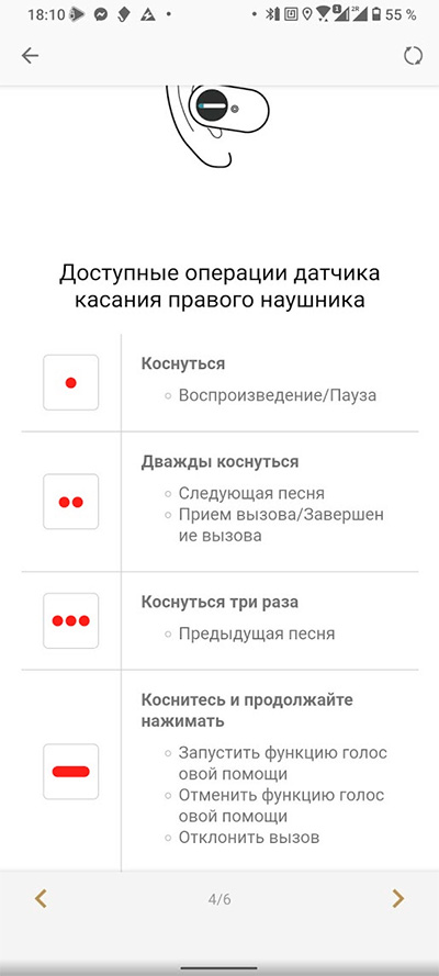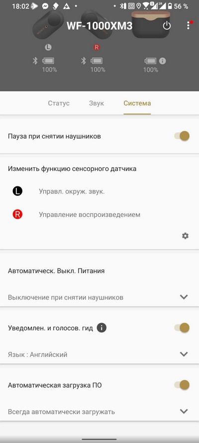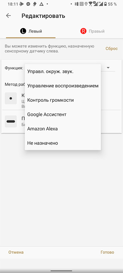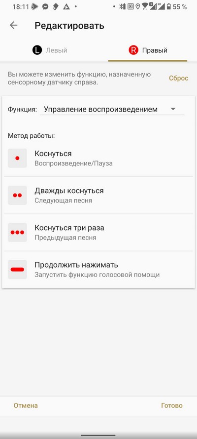 Ну и отличная возможность - перенастраивать функции сенсоров правого и левого наушников.