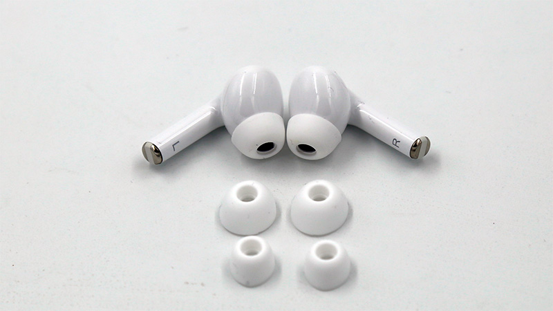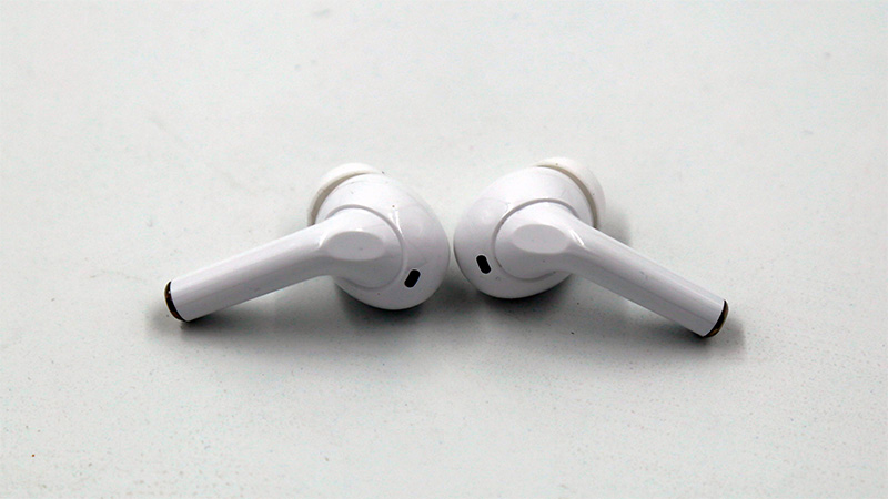 Вот наушники отдельно. Формой явно повторяют AirPods Pro: дизайн в стиле "гвоздики из ушей". Некоторым пользователям такой дизайн нравится. Меня он точно не раздражает, но очень зависит от того, как это все выполнено, как управляется и как сидит в ушах.