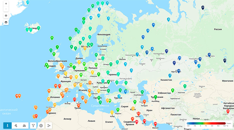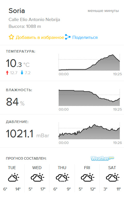 Вот, например, датчик, расположенный недалеко от Нижнего Новгорода. И датчик из испанского города Soria - город расположен в горах, там достаточно холодно.