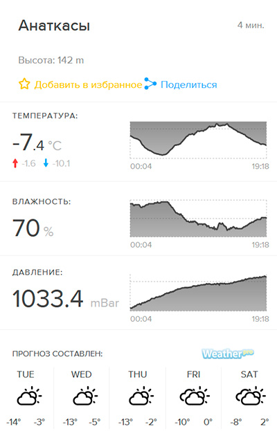 Истины ради стоит добавить, что любой сайт-с-погодой и картинка за окном зачастую сильно отличаются, как в градусах, так и в осадках. Скорей сайт - это прикинуть примерную погоду на завтра-послезавтра. И то, плюс-минус лапоть.