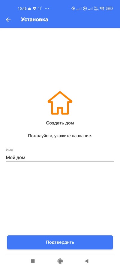 Модуль подключен, система предлагает назвать дом и указать, в какой комнате находится основной модуль. (Потому что можно подключать и другие аналогичные модули для других комнат.)
