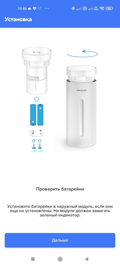 Подключение внешнего модуля. Собственно, в него просто нужно вставить батарейки и установить модуль на улице.