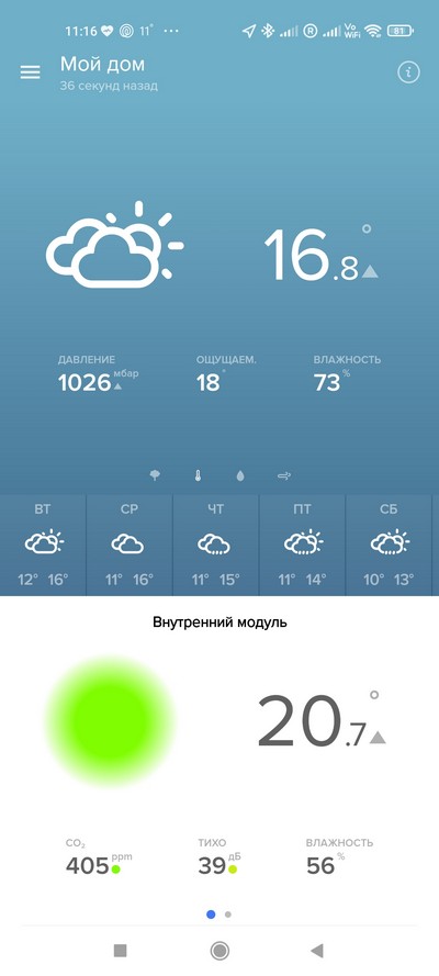 Для меня существенным минусом этого устройства является невозможность посмотреть основные погодные параметры не открыв приложение смартфона. Удобно же просто глянув на дисплей устройства увидеть температуру/влажность внутри помещения и снаружи. А уже через приложение смотреть все остальные, включая СО2, прогноз погоды и т.п....