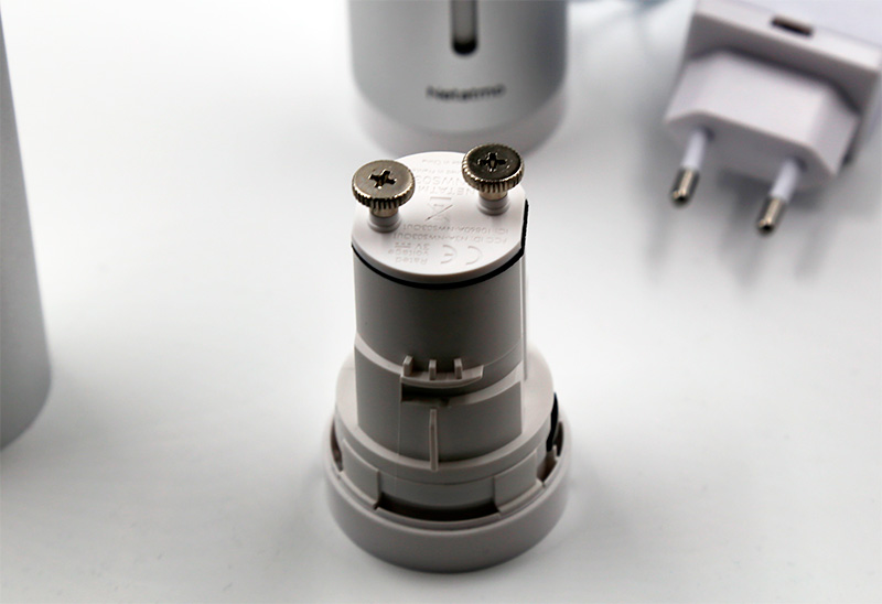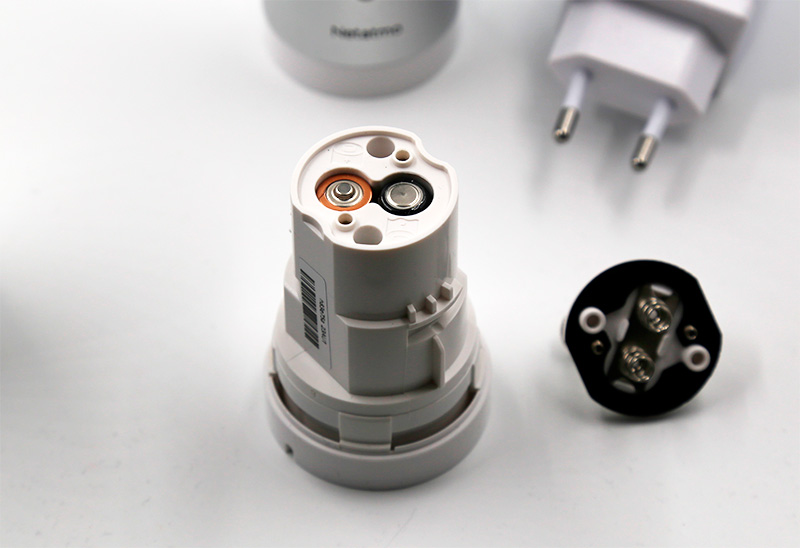 Из внешнего блока вытаскивается вставка, винты крышки отвинчиваются, внутрь ставятся две батарейки, после чего крышка снова привинчивается и вставка снова устанавливается в блок. Кстати, крышку можно случайно прикрутить не так, как нужно (развернутой на 180 градусов), и в этом случае внешний датчик работать не будет. Подтверждение того, что крышка установлена правильно, - у вставки снизу начнет мигать зеленый огонек, показывающий, что питание от батарей поступает.