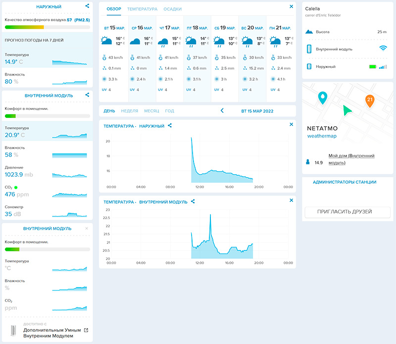 Также можно добавлять других пользователей, чтобы они имели доступ к показаниям станции через приложение или через сайт Netatmo. Там через облачный сервис доступны все данные.