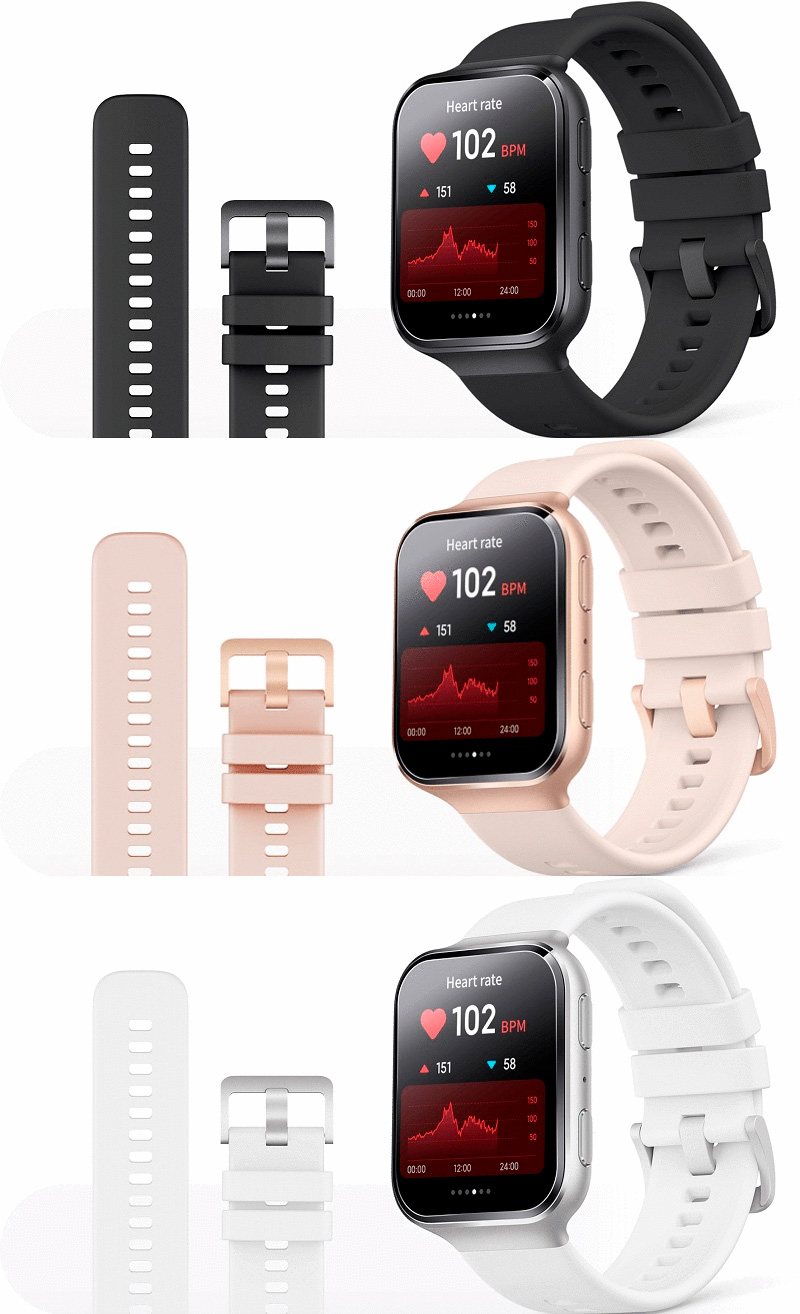 Цвета корпуса и ремешка: черный, белый, розовый