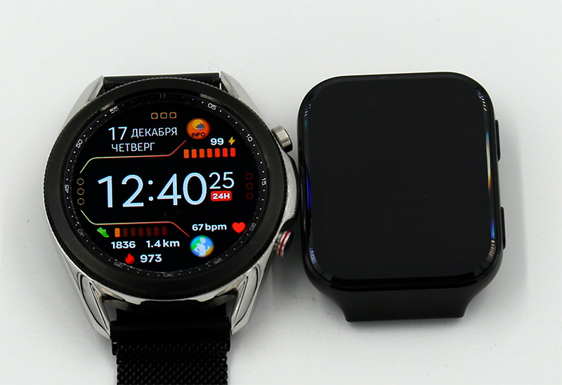 Корпус часов - немаленький: вот они рядом с Samsung Galaxy Watch 3.