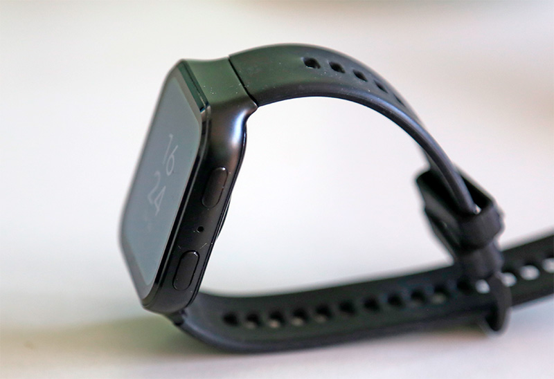 Корпус у часов прямоугольный, справа - две управляющие кнопки.