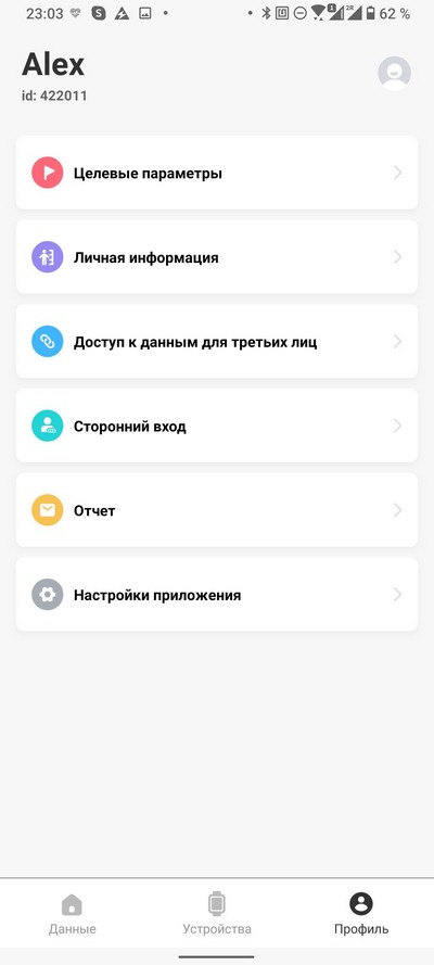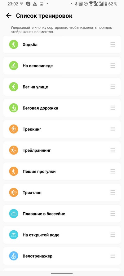 Настройка списка тренировок и дополнительные настройки.