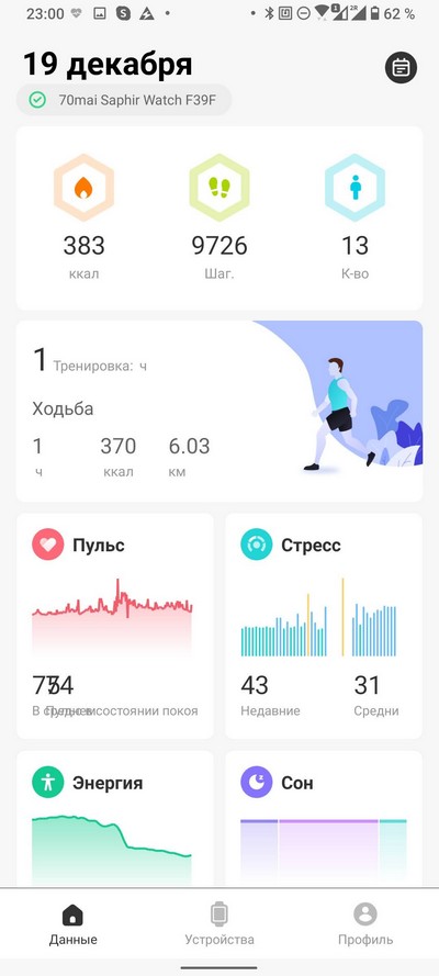 Мониторинг: сон, физическая активность, тренировки, сердечный ритм