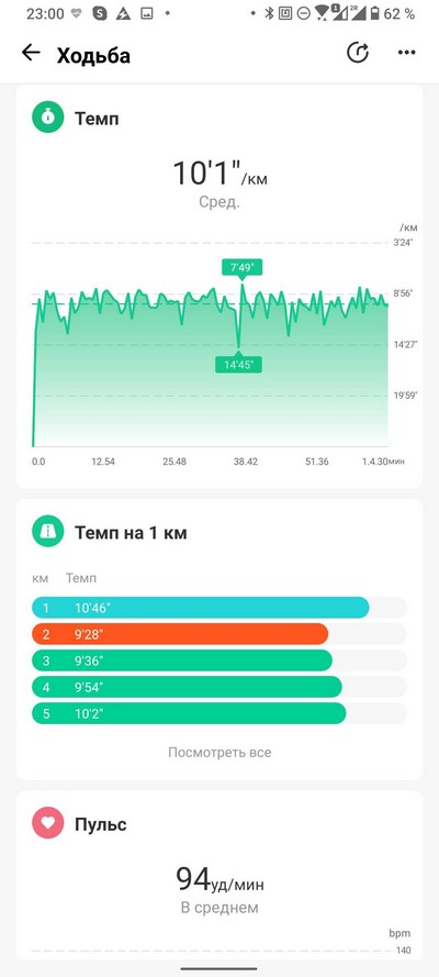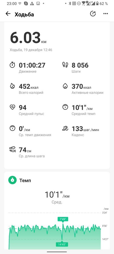 Тренировки - с этим здесь примерно так же, как и у Amazfit GTR 2, то есть что-то отслеживают прилично, что-то нет. Главная лажа здесь - километраж. С ним все как-то странновато. Я измерял на хорошо промеренной трассе: пульс - более или менее (если рука не влажная и ремешок затянут), скорость - более или менее, километраж - подвирает. Причем GTR 2 завышает, а эти часы - занижают: например, на моей сто раз промеренной дистанции в 6,38 километра эти часы пару раз занизили на триста метров, что много. Но, впрочем, когда я сравнивал с часами Garmin - вроде считало нормально: прогулку на 3,29 километра по Garmin эти часы определили в 3,25 километра.