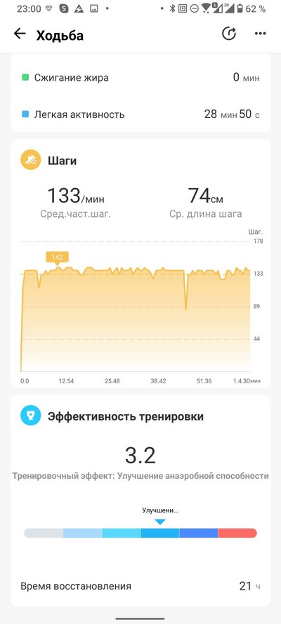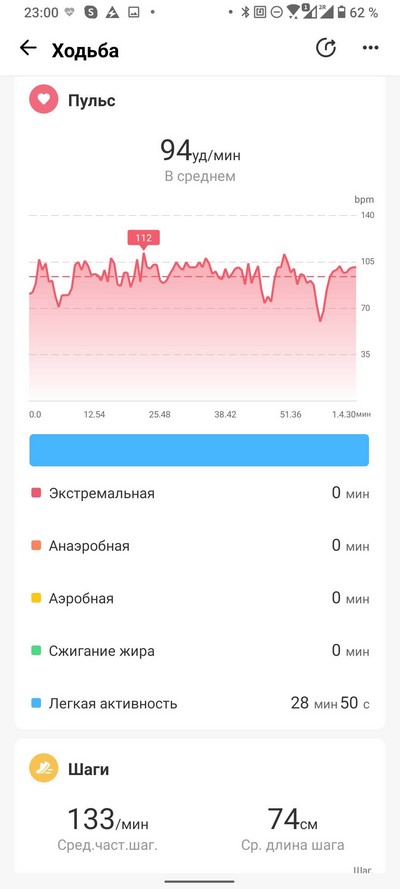 Пульс и шаги во время тренировки.
