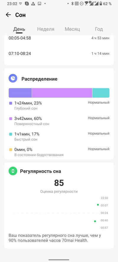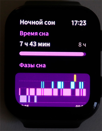Отслеживание сна - нормальное, на уровне почти всех остальных производителей, кроме часов Huawei, которые сон отслеживают лучше всех. То есть здесь более или менее нормально фиксируют засыпание, про фазы сна ничего сказать не могу, насколько точно это измеряется, а с пробуждением и последующим засыпанием - по-разному. Может фиксировать, может нет.