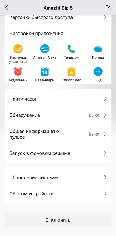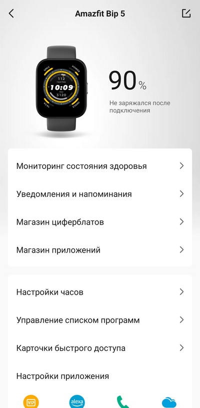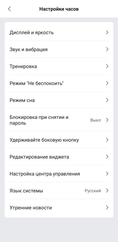 Приложение сразу обнаруживает и подключает часы, после чего можно приступить к их настройке.
