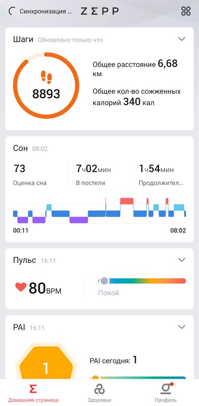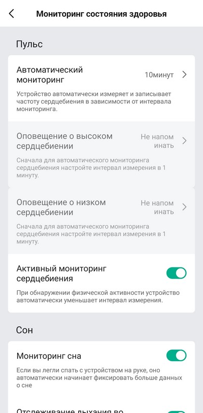 Мониторинг: сон, физическая активность, тренировки, сердечный ритм, оксигенация крови
