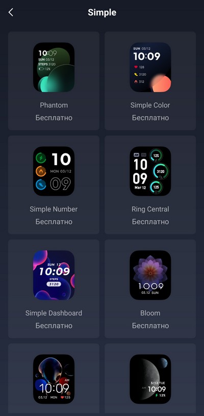 От циферблата свайпы влево-вправо - виджеты различных приложений. Их список и порядок настраиваются на смартфоне.