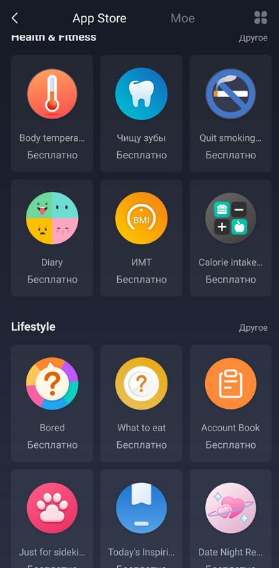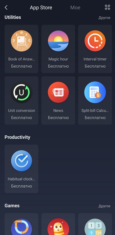 Приложения, которые можно дополнительно установить на часы: там порядка 70 приложений, и они постепенно добавляются.