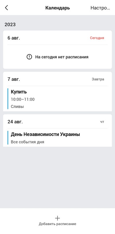 Настройки календаря.
