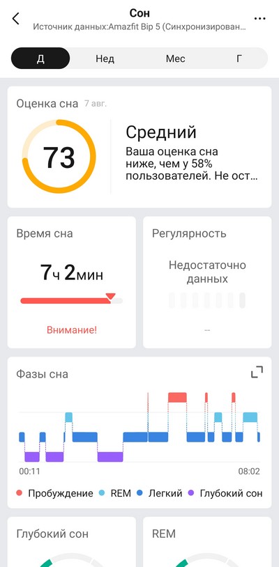 Мониторинг сна - хорошо, измерялся достаточно точно. Очень редко часы могли не зафиксировать продолжение сна после кратковременного просыпания, но такое бывает у всех часов. И эти часы нормально определяли дневной сон и записывали его данные отдельно, что вообще мало кто делает (те же часы Samsung Galaxy Watch такое не умеют, они максимум могут приплюсовать дневной сон к ночному).