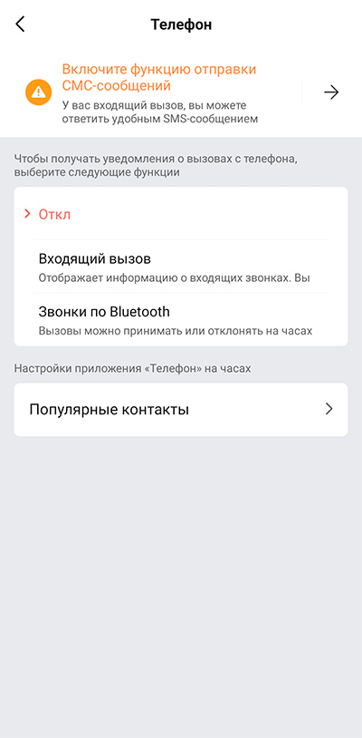 У Bip 5 есть (во всяком случае, заявлено) функции ответа на звонок предустановленной фразой по SMS, а также функция приема звонка на часах. Эти функции теоретически можно включить в настройках, но никакие СМС до абонента не доходят, а звонки по Bluetooth и вовсе просто не включаются - выдается сообщение о сбое.