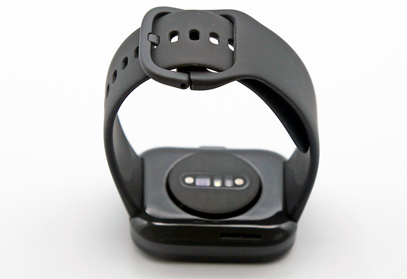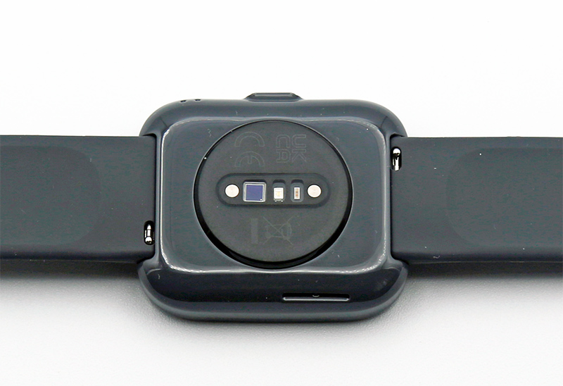 Датчики и контакты для зарядки на нижней части часов. Крепление ремешка - стандартное, ремешок легко меняется за несколько секунд. У прошлой версии ремешок имел ширину 20 мм, здесь уже 22 мм (видимо, из-за выросшего дисплея).